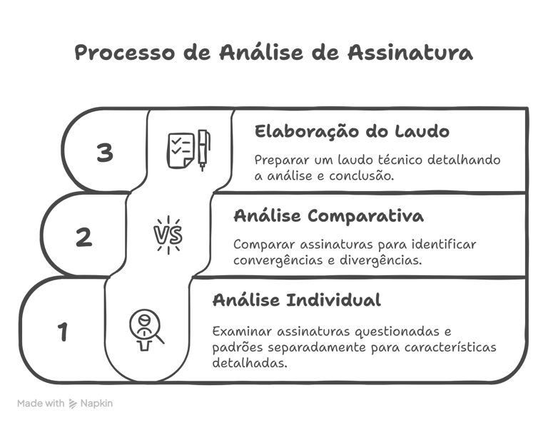 ✅ Apresenta uma conclusão objetiva sobre a autenticidade da assinatura.